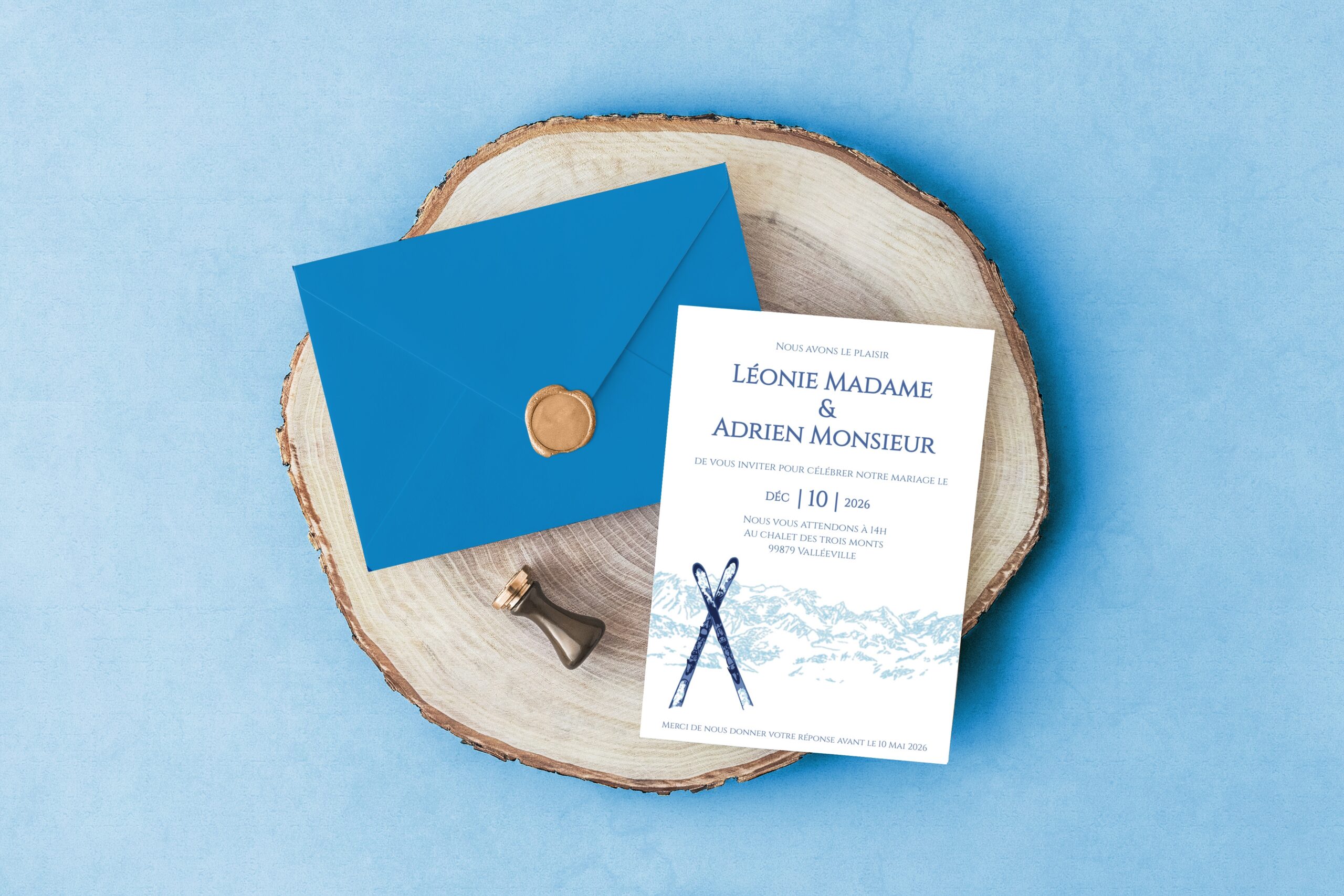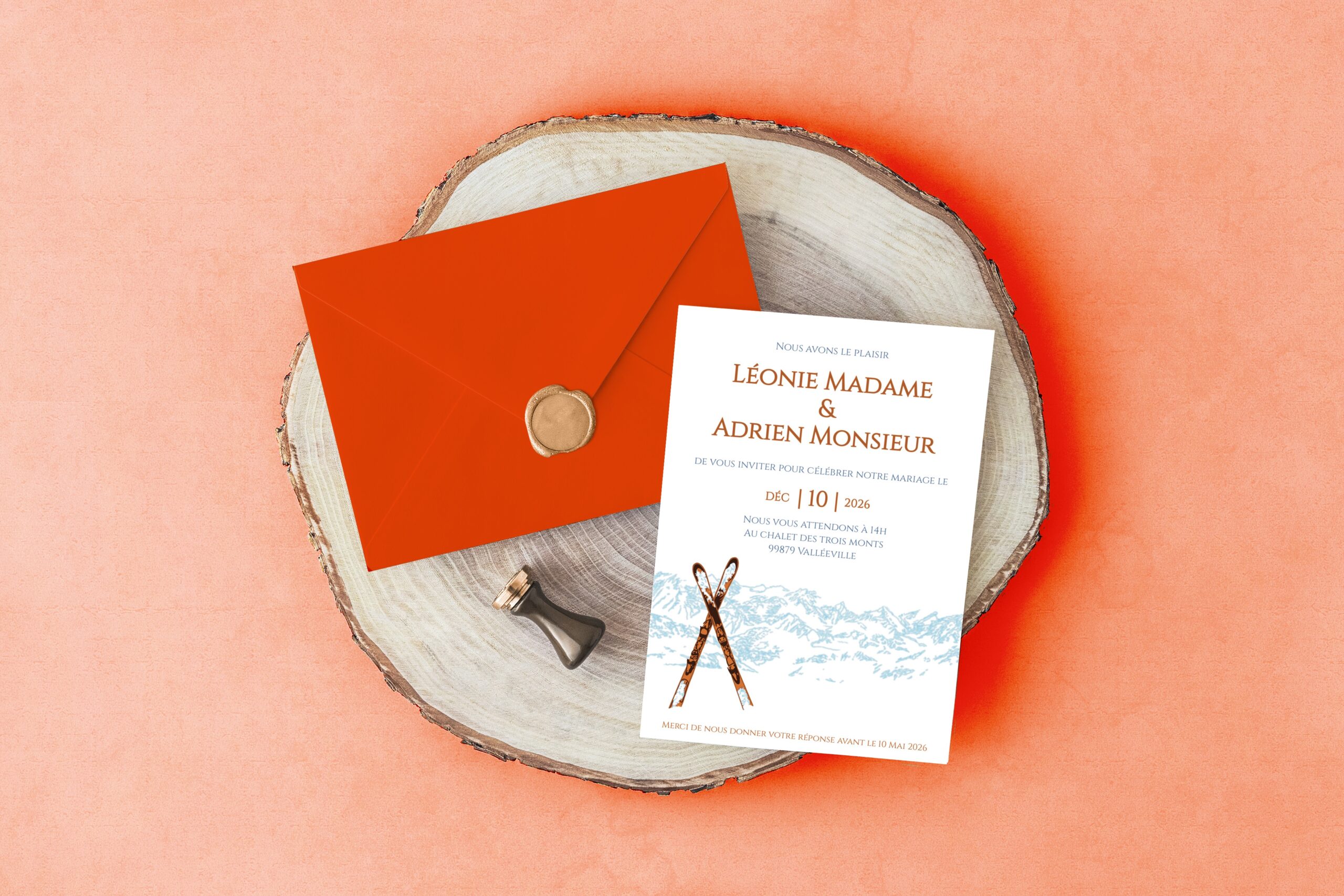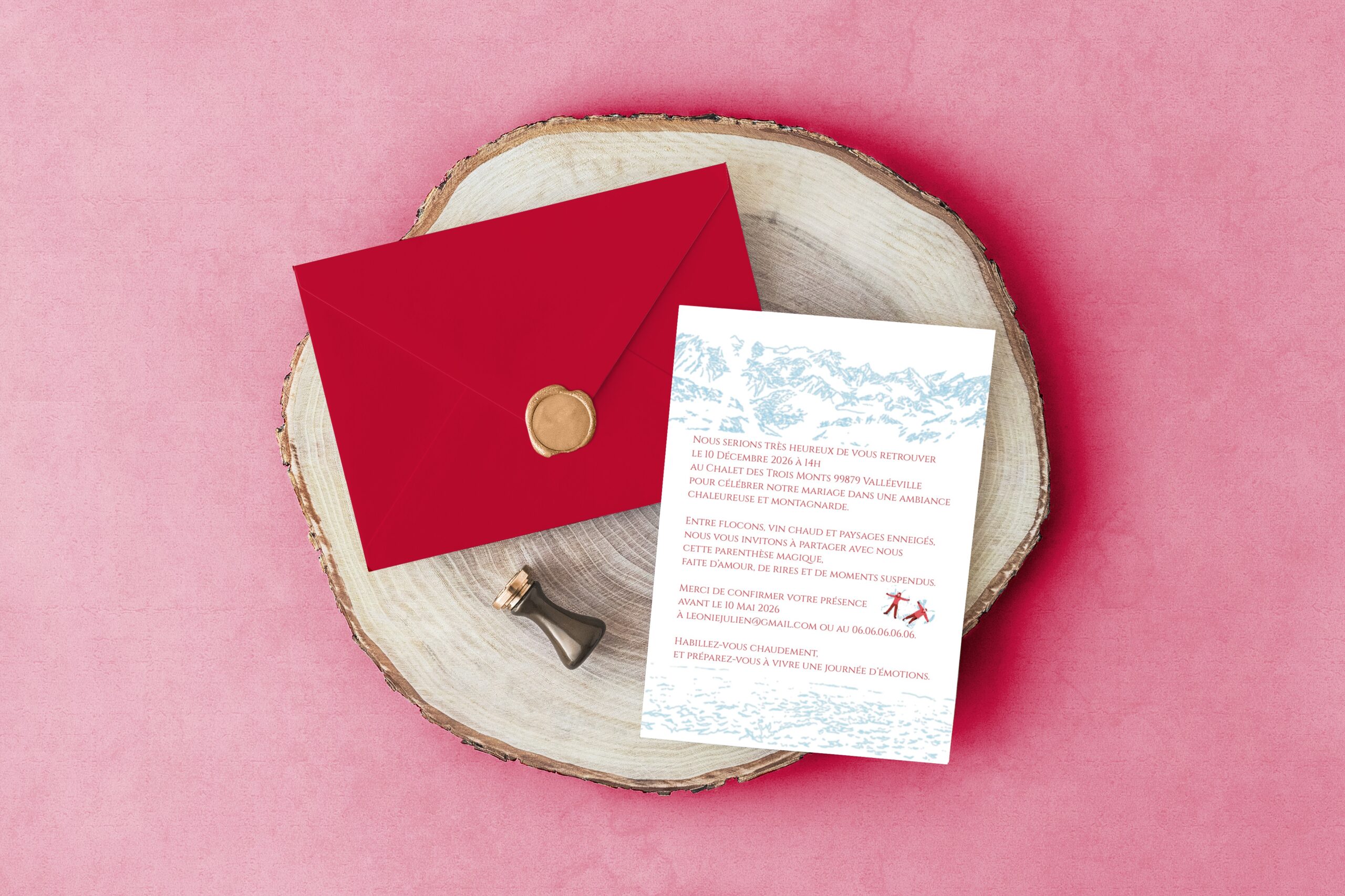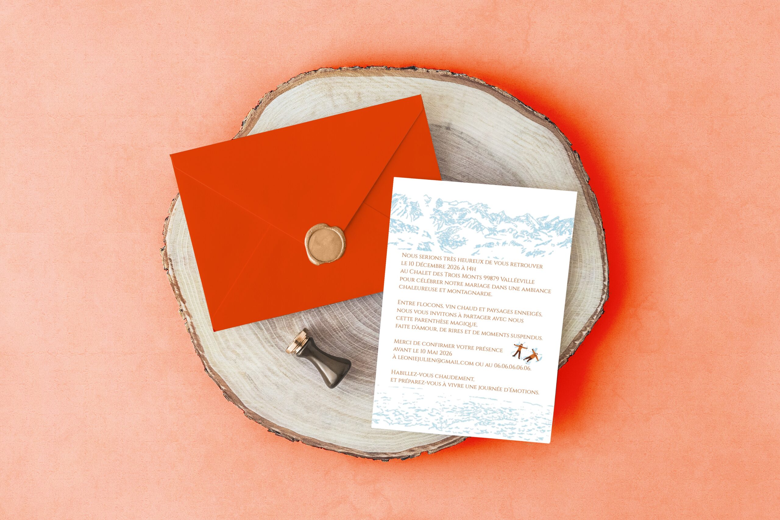 L’invitation Montagne représente la simplicité et les soirées enneigées.